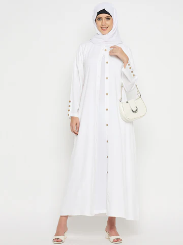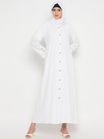 Front Open White Rayon Abaya Burqa with Black Hijab